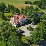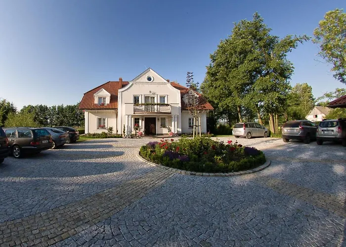 Dworek Pod Roza度假别墅的宾客可欣赏花园的景致,距离Plaza Karwia3.4公里. 宾客可以在露台放松身心.